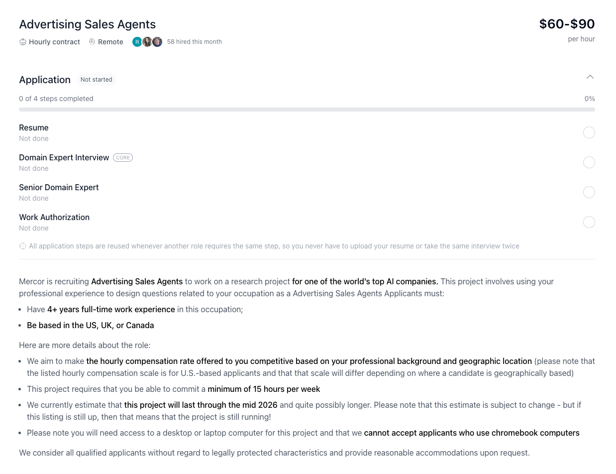 Image: A Mercor job ad for training advertising AI